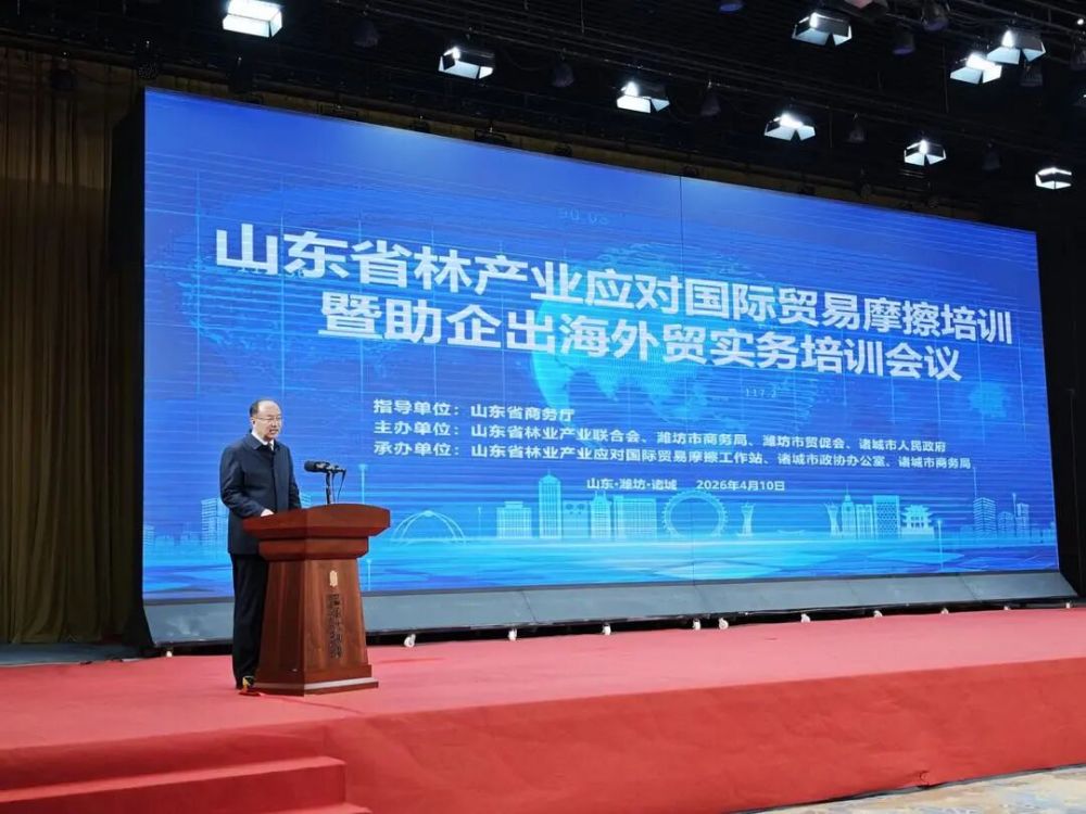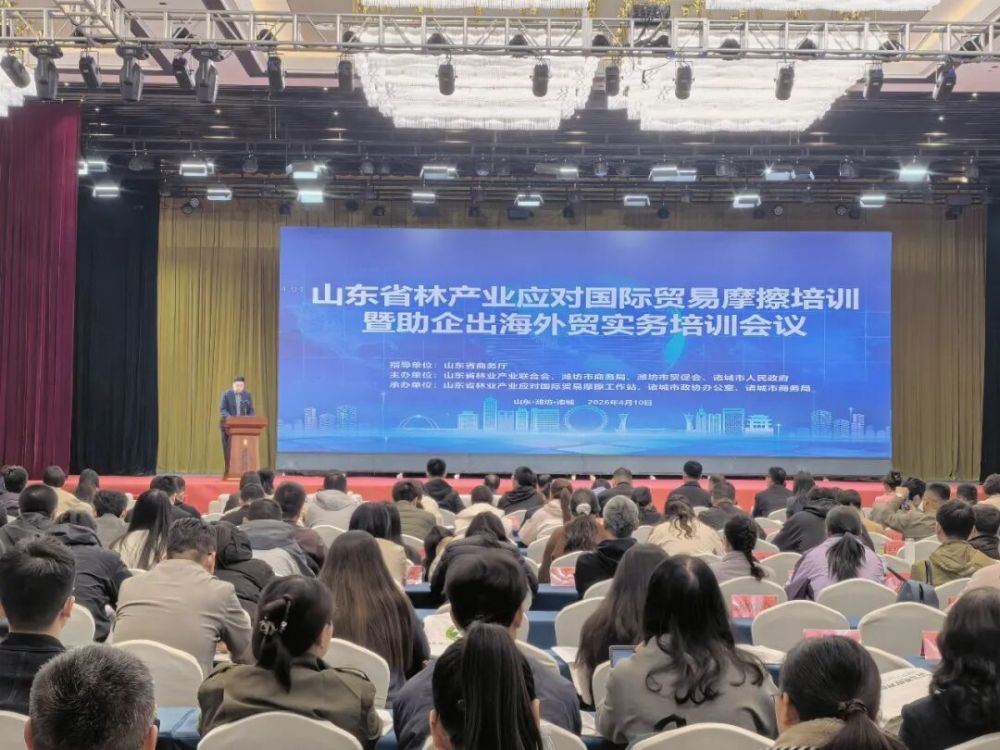 为切实提升山东林产业企业应对国际贸易摩擦能力,破解企业出海难题,助力全省林业产业高质量可持续发展,4月10日,由山东省林业产业联合会诸城市人民政府主办的山东省林产业应对国际贸易摩擦培训暨助企出海外贸实务培训会议在诸城市成功举办。本次培训由山东省林产业应对国际贸易摩擦工作站、诸城市商务局承办,山东省商务厅悉心指导,吸引了全省各地300余名林产业企业代表、行业同仁参会,为山东林企出海注入专业动能。